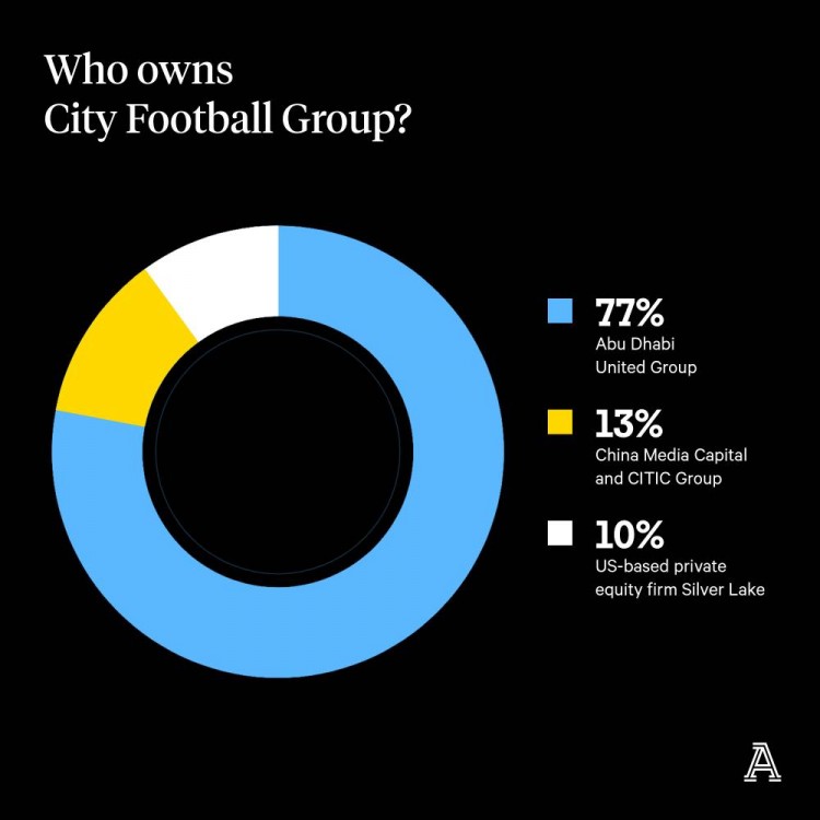城市足球集团一直由曼苏尔的私人投资公司阿布扎比联合集团全资拥有,直到2015年,华人文化产业投资基金和中信集团斥资4亿美元(2.89亿英镑)收购了城市足球集团13%的股份。2019年11月,美国私募股权公司银湖资本也加入了进来,以5亿美元(3.73亿英镑)收购了阿布扎比联合集团手中10%的股份。最终阿布扎比联合集团手中持有77%的股份。