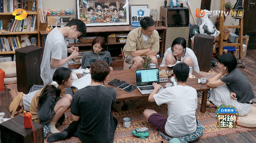 再加上,黄磊、何炅想要打破刻板印象、肌肉记忆的背后,对未来的“迷茫”也内化到节目中。前四期节目里呈现出一种无序感,就算是何炅也曾以“一天吃了三顿饭”来形容他们的一天;何炅的安然入睡、彭昱畅的自在看书、妹妹沉迷女工,确实是自在,但到“无视”了飞行嘉宾的程度,多少有一种“摆烂式”的松弛。